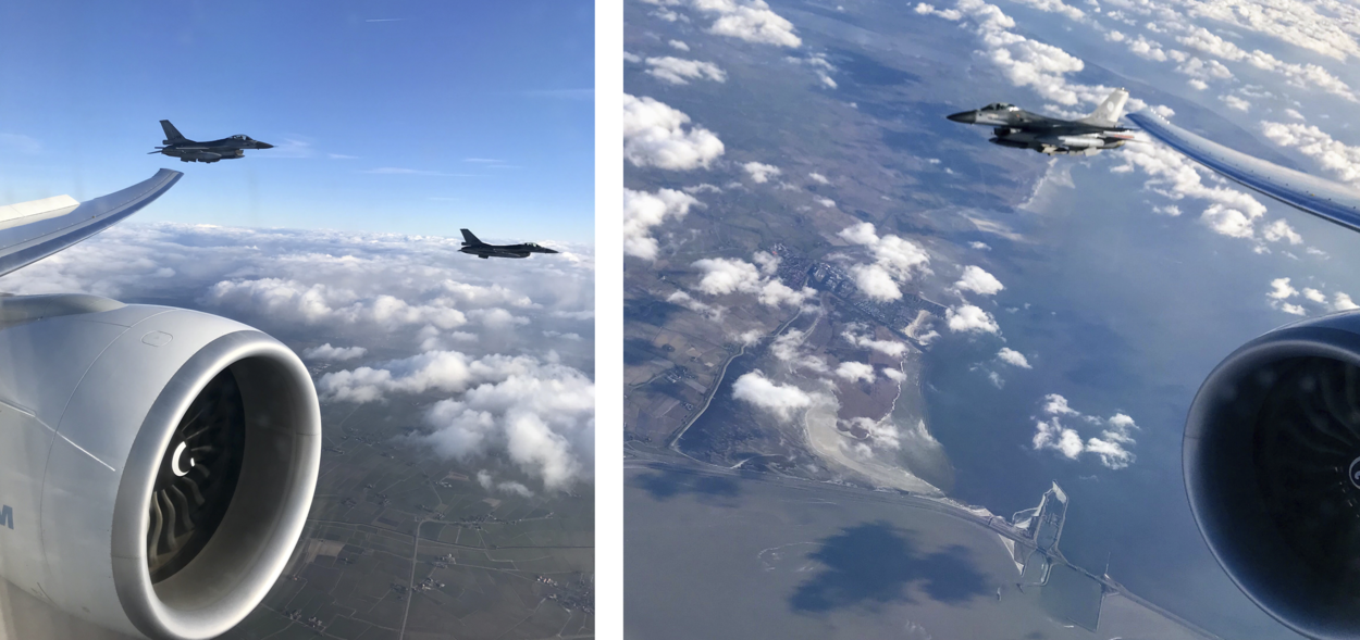 Onder begeleiding van 2 F-16’s landde op 27 februari de Boeing 777 met de Olympische ploeg weer op Nederlandse bodem. Vanaf de landsgrens escorteerden de gevechtsvliegtuigen de Nederlandse 'medaillevlucht'. Die keerde huiswaarts na deelname van de Nederlandse sporters aan de winterspelen in het Koreaanse Pyeongchang. De Nederlandse toestellen maakten van de gelegenheid gebruik om de Quick Reaction Alert (QRA) te trainen. Foto’s: TeamNL