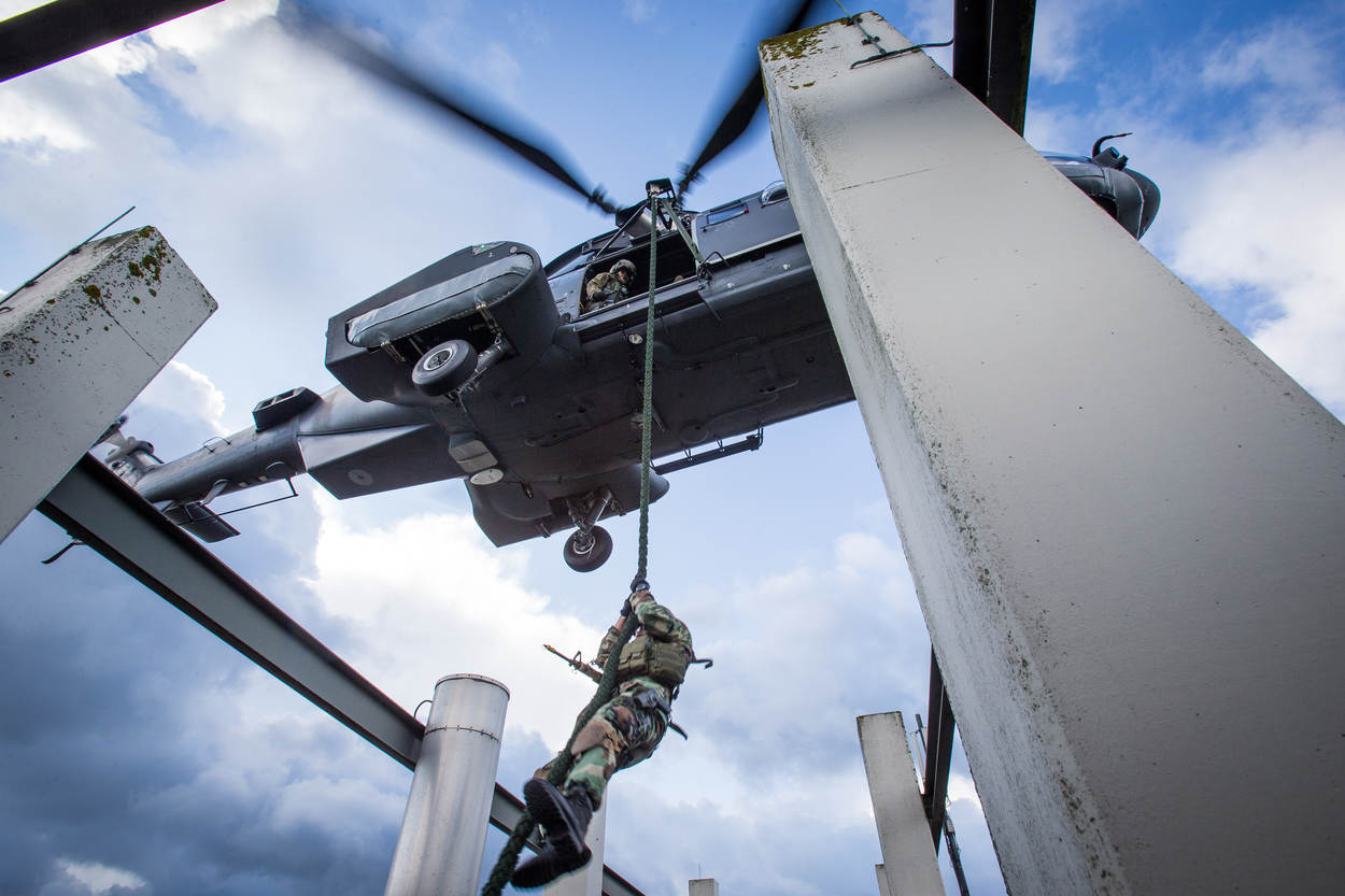 Nederland erkent die noodzaak en stuurt vanuit het CLSK Ter Veer – niet voor niets sinds een half jaar Commandant 300 Squadron – van 2013 tot 2016 naar het NSHQ in België. “Daar was ik de eerste Nederlandse luchtmachter op 200 anderen uit 29 landen. Later volgde er ook nog een loadmaster.” Ter Veer krijgt een plek binnen het Air Development Programme, waarmee het NSHQ de NAVO-opbouw van SOF Air-capaciteiten wil versnellen. “Een gave periode. Pionieren tot en met, maar daar zijn we bij de luchtmacht wel van.”