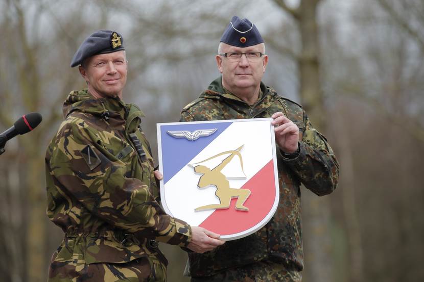De Duitse luchtverdedigingseenheid Flugabwehrraketengruppe 61 kwam op 4 april onder bevel van het Defensie Grondgebonden Luchtverdedigings Commando (DGLC). Commandant kolonel Jan Blom nam de eenheid op de Luitenant-generaal Bestkazerne in Vredepeel symbolisch over van de Duitse plaatsvervangend Commandant der Strijdkrachten (foto). Ook minister van Defensie Ank Bijleveld, haar Duitse collega Ursula von der Leyen en Commandant der Strijdkrachten luitenant-admiraal Rob Bauer waren aanwezig.