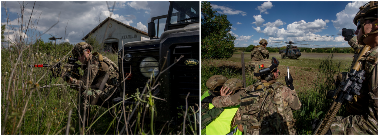 Vol lof is Dirk over de medewerking van de Portugese strijdkrachten. Zij trekken alles uit de kast om Hot Blade nét dat realistische tintje te geven. Vooral met special forces en gevechtsvliegtuigen zijn de gastheren scheutig. Aan vrijwel iedere insertie, extractie, aanval of verdediging doen desgewenst een overdaad aan commando’s, pathfinders en andere soorten verkenners mee. Het oefenscenario voorziet in een vijand van een heetgebakerde soort. Geruststellende gedachte voor de troepen op de grond en voor de helibemanningen is dat hoog in de lucht zwaarbewapende F-16’s surveilleren. Je weet maar nooit…