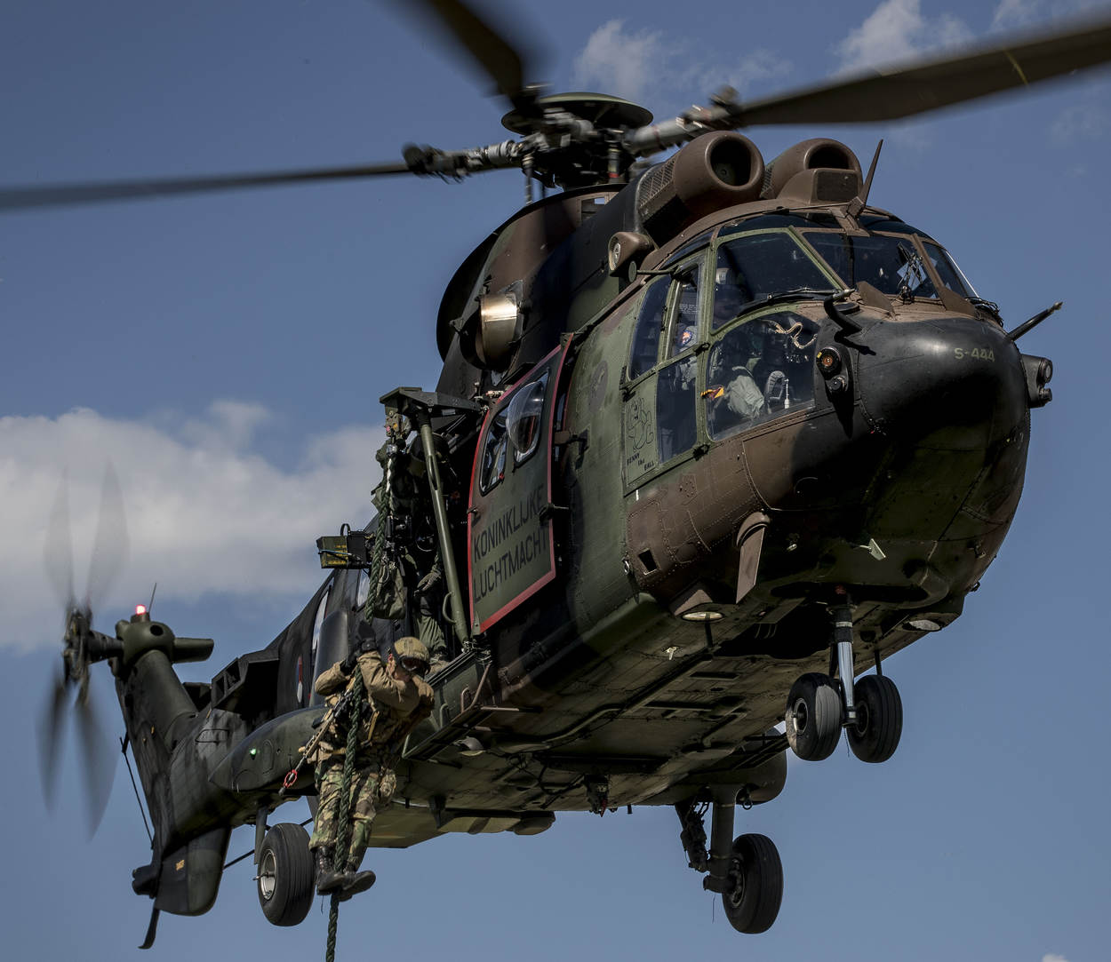 Het boze boertje houdt zich niet in tegen de net uitgestegen, stoer uitziende commando’s. Of die helikopters kunnen ophouden met laagvliegen over zijn weitje. De drachtige koeien raken er door van streek. “Binnen een paar minuten is alles over en zijn we weer weg”, sussen de mannen-in-het-groen de situatie. Met veel geraas drukt een Hongaarse Mi-24 Hip tientallen meters verderop zijn wielen tegen de grond.