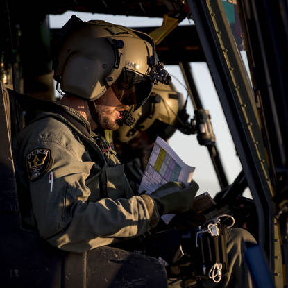 “Ik doe dit werk al zo’n 20 jaar en dit vind ik nog steeds het allerleukst”, verkondigt commandant van een Mobile Air Operations Team sergeant-majoor Patrick enthousiast. Voor een extractie van Portugese landmachters ergens in de vrije natuur staat volgens schema een Nederlandse Cougar gepland. Maar 4 Duitse NH90’s dienen zich eerder aan. Nu is 4 een beetje veel om een handjevol personeel te vervoeren, maar toch. “Voordat de Duitse bemanningen denken aan samenwerken met andere EU-partners willen ze eerst de coördinatie met ‘eigen volk’ onder de knie krijgen”, legt Cuppes uit. “Dat is het mooie van Hot Blade. Deelnemers mogen van tevoren hun oefendoelen inschieten. Die verwerken we vervolgens in het scenario.”