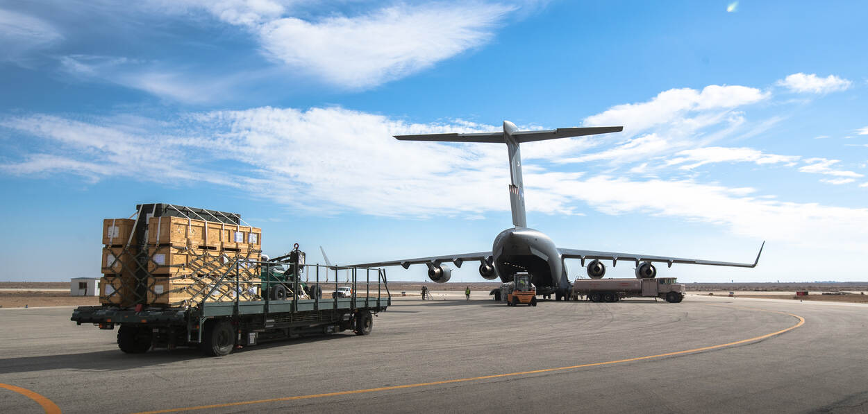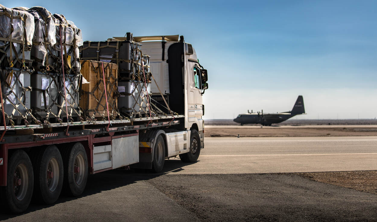 “Er is een aantal zaken dat we wel door de lucht moeten vervoeren met KLu-kisten of NAVO-partners. Alles waar het stempel ‘te beschermen belangen’ op zit. Denk bijvoorbeeld aan wapens en technologie. Wat we over zee vervoeren, gaat aan boord van een commerciële reder en arriveert in de haven op Jordaanse trucks. Overigens worden onze konvooien onderweg beveiligd door de Jordaanse krijgsmacht.