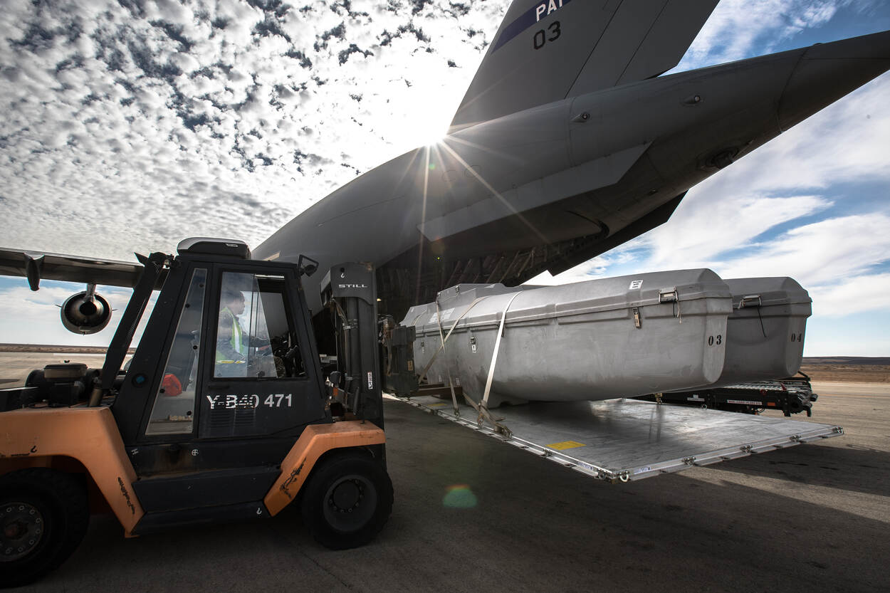 “Sommige spullen moeten met spoed terug naar Nederland omdat ze daar keihard nodig zijn in verband met de gereedstelling voor de flitsmacht van de NAVO”, vertelt majoor Marco, commandant Redeployment Task Force in zijn hoofdkwartier, een gammel kantoor. “Daarom hebben we al een volle C-17 naar Nederland gestuurd met alle ‘kritische items’. Reserveonderdelen voor onze gevechtsvliegtuigen, verbindingsmiddelen zoals de satcom en ondersteuningsmateriaal zoals de master crane. Ook de out of area-brandweerauto’s zijn al terug in Nederland, net als de voertuigen die we gebruiken voor bomtransporten.”