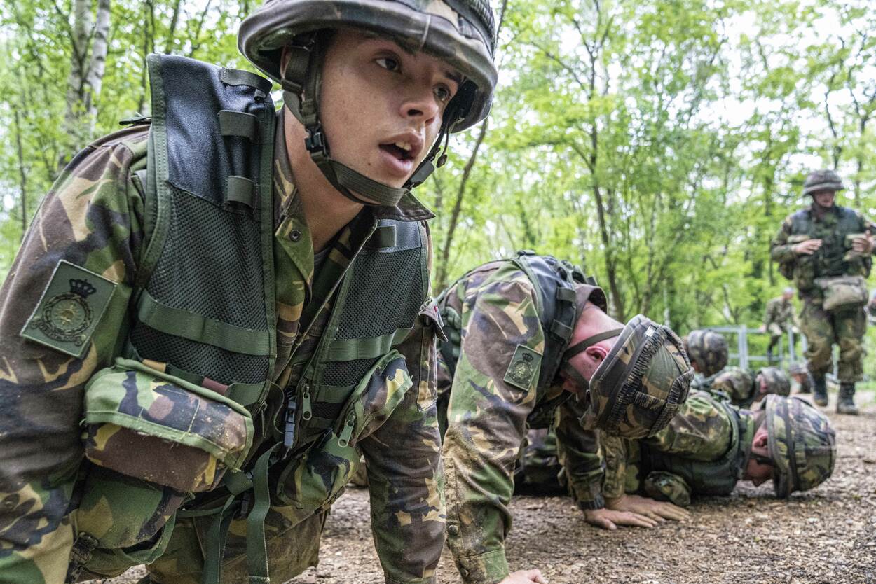 Sergeant 1 instructeur Boot in zijn element: “Voorwaarts! Doorlopen! Denken jullie dat je er al bent!” Man of vrouw: niemand wordt ontzien.