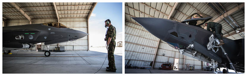 We zullen de F-35 hier dus minder zien dan de F-16. Voor het afronden van opleidingen en om bijzondere runs te oefenen.” Video still: sergeant-majoor Ruud Mol
