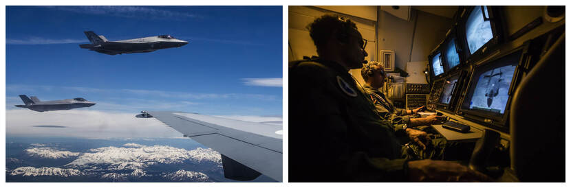 De rol van 334 is dan echter nog niet uitgespeeld. De 2 gevechtstoestellen maken een extra stop op Goose Bay in Canada en de vliegers bekijken hun mogelijkheden. “En dan blijkt ineens de 2e ‘10’ die nog steeds voor reparatie in Frankrijk stond, op weg richting Groenland”, zegt F-35 vlieger majoor Pascal Smaal die de operatie vanuit Nederland aanstuurt. De kist zou eigenlijk alleen maar opgehaald worden door een ferry crew. Maar door snel schakelen van Eindhoven krijgt de bemanning meteen de belangrijke opdracht: de F-35’s de Atlantische Oceaan over te helpen. Lody: “Gelukkig hadden ze alles bij zich om een missie uit te voeren; niet standaard als je een toestel gaat ophalen.”
