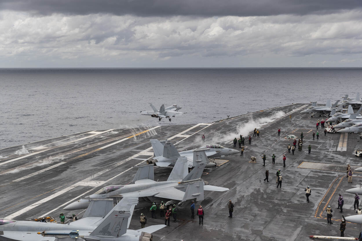 Zien hoe een F/A-18 Hornet weer aan boord terugkomt? Bekijk dan deze carrousel.