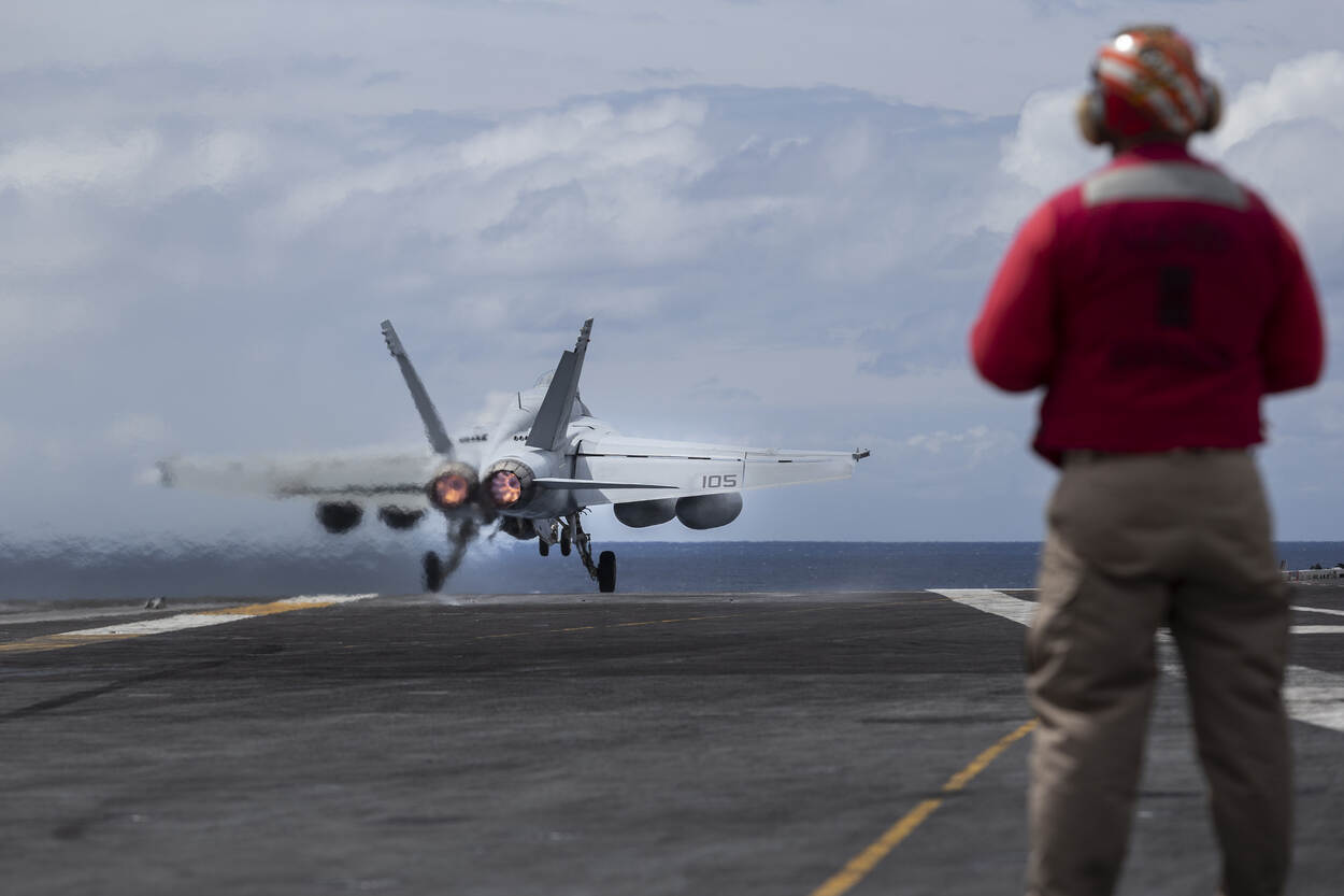 Zien hoe een F/A-18 Hornet van boord wordt geschoten? Bekijk dan deze carrousel.
