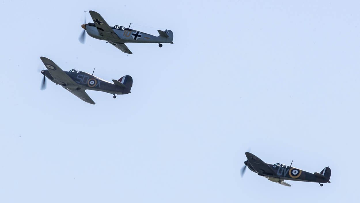 Daar was voor de bezoekers veel te zien, van tentenkampen zoals gebruikt door de Geallieerden én Duitsers met bijvoorbeeld een Messerschmitt 109 ‘in onderhoud’, tot een flightline met historische vliegtuigen als Spitfires, Hurricane, P-51 Mustang en Dakota. De ster van de show, die overigens alleen in de lucht acte de présence zou geven, lukt het echter niet uit Engeland te vertrekken. De Boeing B-17 Flying Fortress ‘Sally B’ heeft een technisch probleem. Tot halverwege de dag is op thuisbasis Duxford geprobeerd het voor Europa unieke toestel aan de praat te krijgen, maar het mocht niet baten. Van een heel andere orde, maar evenzo uniek, was de aanwezigheid van een Lysander waarvan er wereldwijd nog geen handvol vliegwaardig is.