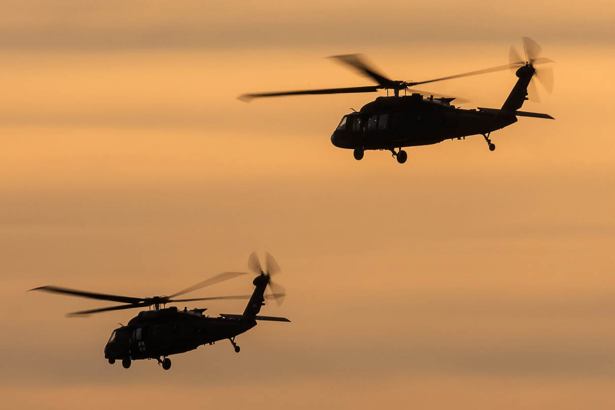 Vanuit Zeebrugge gebruikten de helikopters zoals deze Black Hawks de Belgische vliegbasis Chièvres als tussenstop, net als Eindhoven dat in Nederland is.