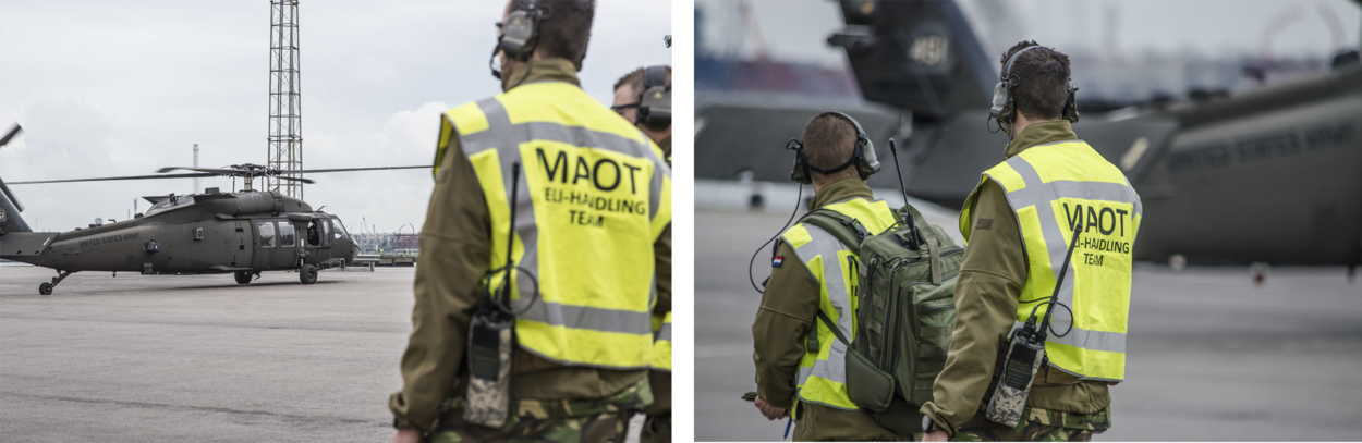 Begeleiding naar het Botlekgebied is in handen van het MAOT van het DHC. Amerikaans personeel regelt de landing van de helikopters op het haventerrein.