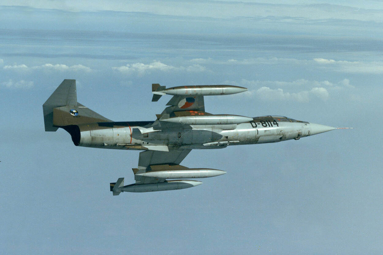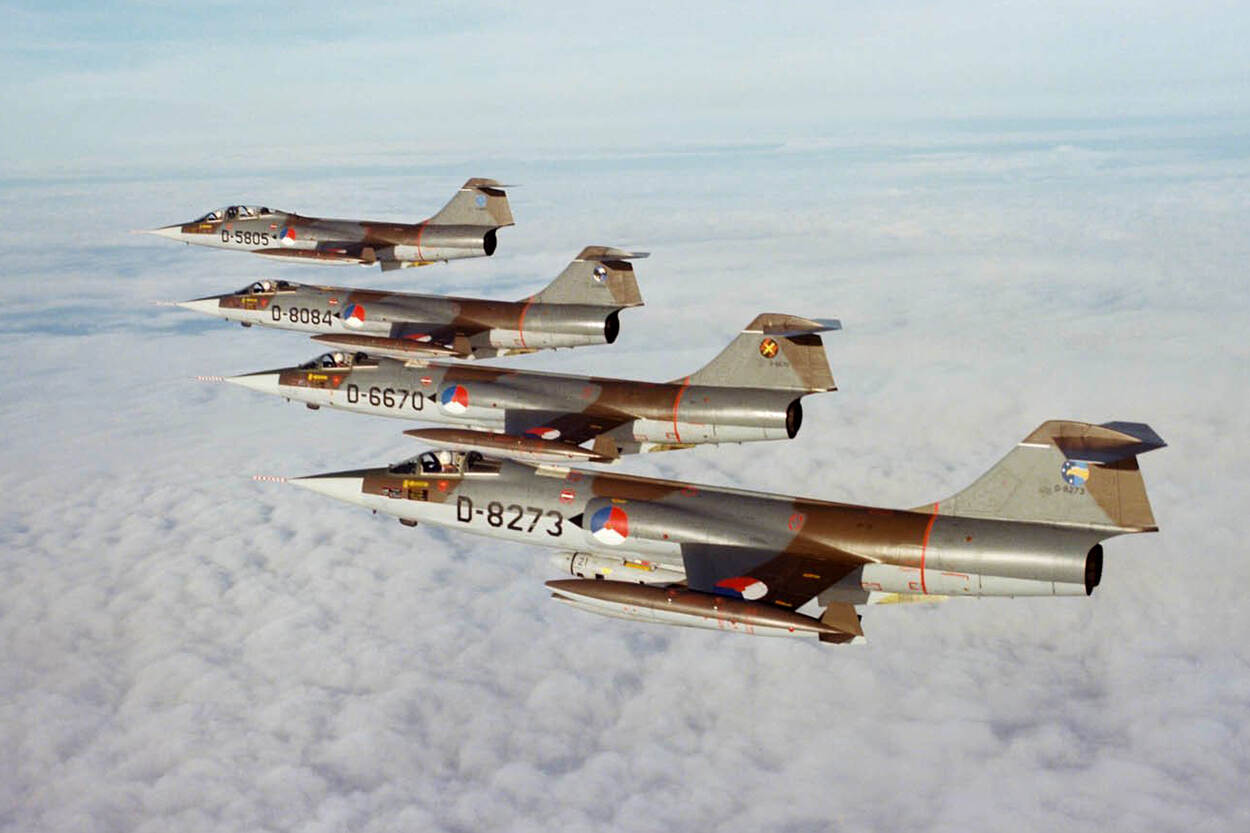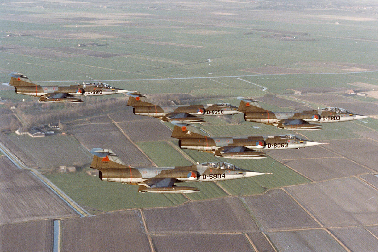 Tijdens vliegshows wordt geregeld uitgepakt met een grote formatie Starfighters. Het type dient bijna 22 jaar bij de luchtmacht. Vergelijk dat eens met de F-16 (…). De F-104 is met een topsnelheid van Mach 2,2 – zo’n 2600 kilometer per uur – het snelste type dat bij de KLu vloog.