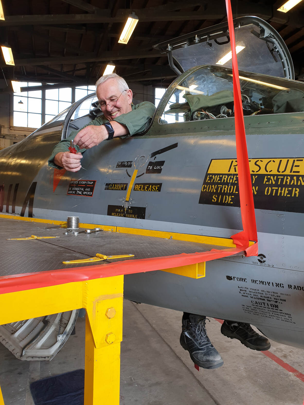 Het ligt er echter aan wat de luchtmacht met een vliegwaardige F-104 wil. Vliegen zelf is geen probleem. Een CLSK-testvlieger mag er zo mee de lucht in. “Dat is bovendien goedkoper dan met een F-16 of F-35 en meer gewild”, verkoopt Van der Werf zijn project met een glimlach. “Maar het zou ook als Red Air dienst kunnen doen. Technisch gezien is het toestel straks 100 procent. Alles staat of valt uiteindelijk met het behalen van de nodige certificeringen en kwalificaties. Het papierwerk is in deze moderne tijd erg belangrijk geworden.