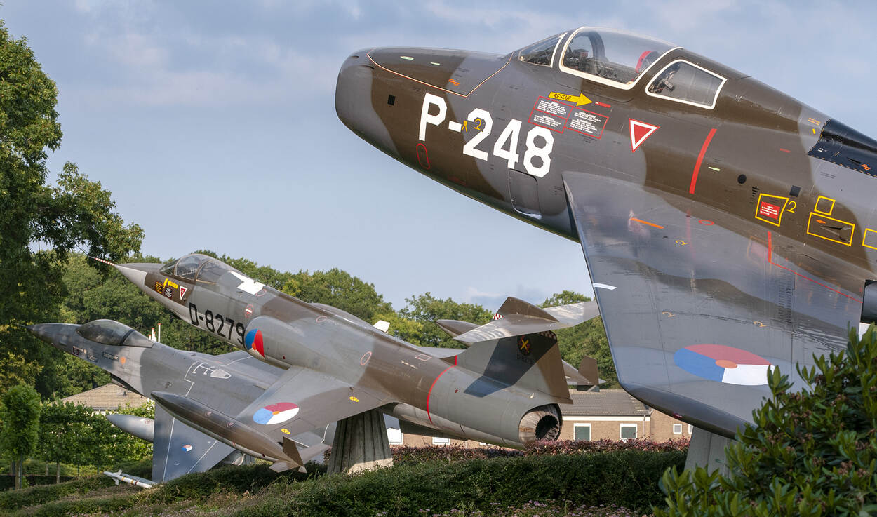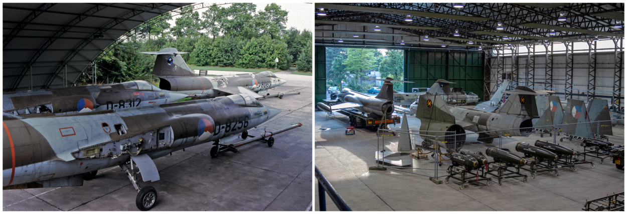 Met 3 Starfighters die half in de open lucht onder een blister schuilen, begint het voor de HVV. De collectie groeit daarna al snel met een 4e exemplaar (foto r.) en daarna 2 F-16’s.