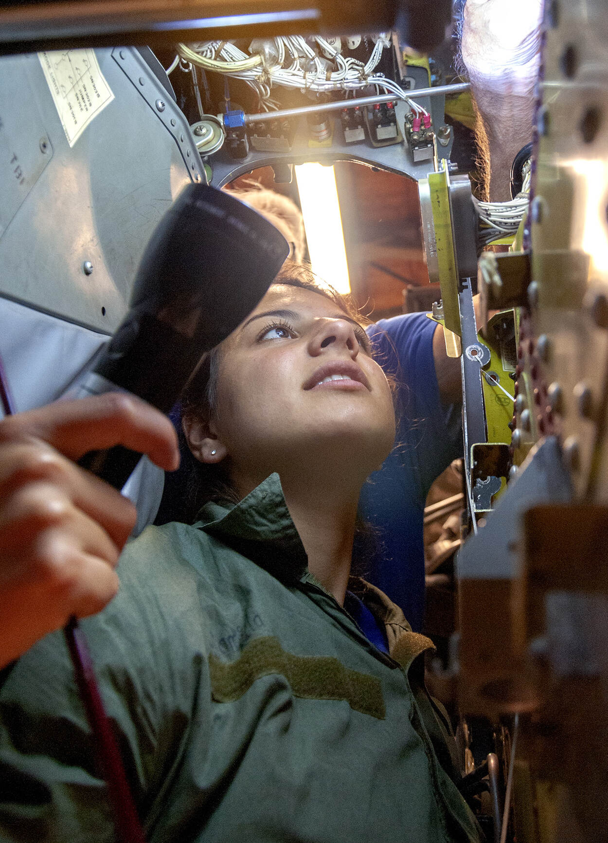 Sleutelen in de cockpit waar duidelijk nog wat onderdelen ontbreken.