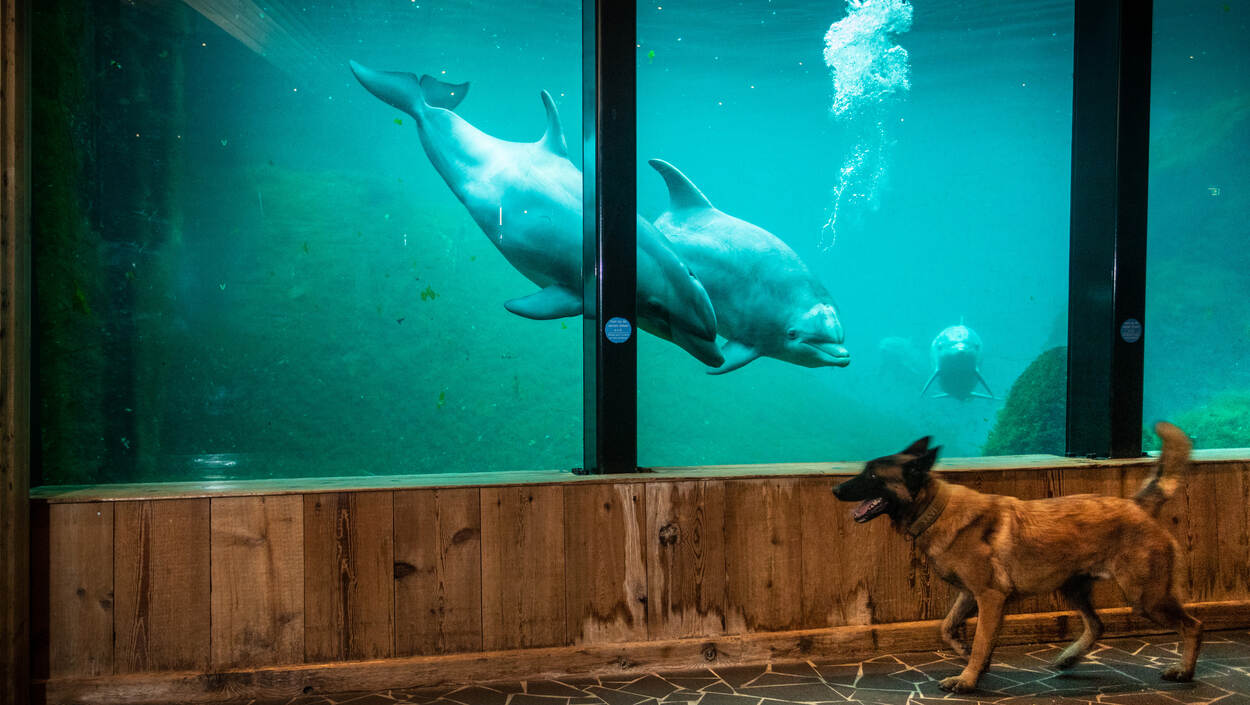 Hoe heftig een hond op zijn omgeving kan reageren, weet veiligheidscoördinator bij het Dolfinarium Gertjan Foppen als geen ander. Een particuliere beveiligingshond raakte onlangs nabij het verblijf van orka Morgan zo van slag dat hij een halve dag stil in een hoekje zat. “Het waren de tonen die de orka uitstootte”, verklaart Foppen. “Voor een mens zijn die niet te horen, maar sommige honden blijken er overgevoelig voor. Afleiding heeft vele gedaantes.”