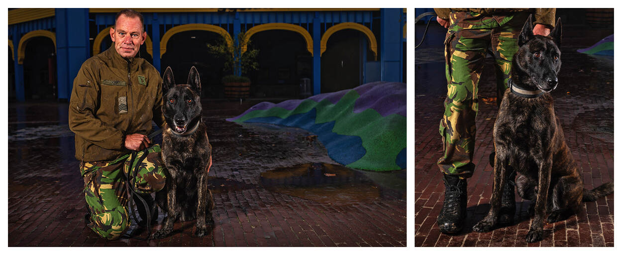 Sergeant-majoor Jan-Willem Jonk met zijn hond Chesto, een 6,5 jaar oude Hollandse herder. Laatste wapenfeit van de hond: ondersteuning bij recente verplaatsingen van het Amerikaanse leger via vliegbasis Eindhoven.
