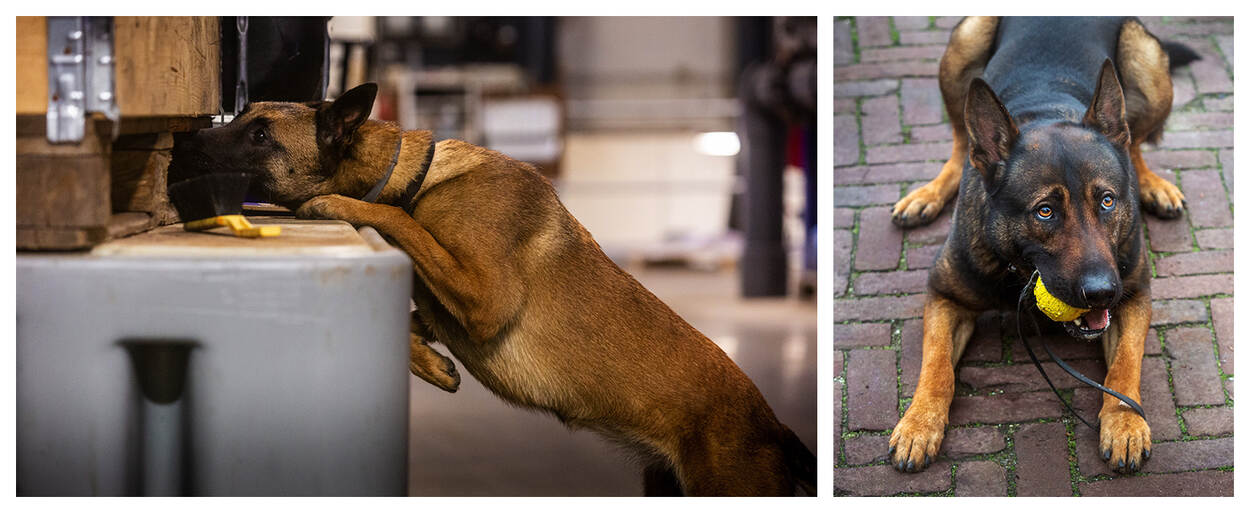 In het Dolfinarium kunnen de honden ongestoord speuren.