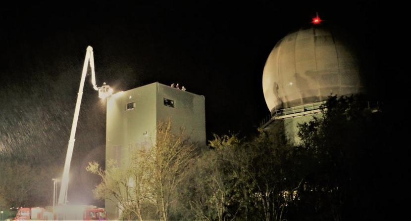Samen met de partners BAM, Thales, Brandweer Fryslan en diverse afdelingen van het AOCS NM, is getoetst of de alarmering van de hulpdiensten in de nieuwe toren naar behoren werkt. Dat gebeurt in het kader van het Veiligheid, Gezondheid en Milieu (VGM)-plan. Ook werd de reactie van de bedrijfshulpverlening getoetst, de melding daarvan naar de Defensie Bewaking en Beveiligingsorganisatie (DBBO) in Stroe, de doormelding naar de Veiligheidsregio Fryslân en het AOCS NM, maar ook de wijze waarop een milieu-incident wordt gemeld. Voor de regionale brandweer was het een mooie gelegenheid kennis te nemen van het bijzondere object dat zich in hun verzorgingsgebied bevindt. Foto: KLu