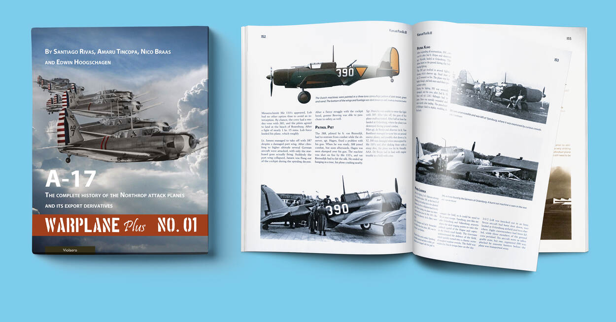 ‘Warplane Plus No. 01 – A-17, The complete history of the Northrop attack planes and its export derivatives’ met ISBN 97890861627103 is geschreven door Santiago Rivas, Amaru Tincopa, Nico Braas en Edwin Hoogschagen en uitgegeven door Violaero (onderdeel van Lanasta in Odoorn). De softback op formaat 22 x 28,5 cm telt 164 pagina’s, is geschreven in het Engels en is voorzien van enkele kleuren en vele honderden zwart-witfoto’s en –afbeeldingen. Het boek kost € 24,95 en is onder andere te bestellen bij de uitgever. Kijk voor meer informatie op www.lanasta.com.