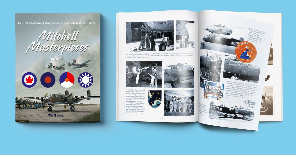 ‘Mitchell Masterpieces – An illustrated history of paint jobs on B-25’s in foreign military service’ Met ISBN 9789086162376, is geschreven door Wim Nijenhuis en uitgegeven door Violaero (onderdeel van Lanasta in Odoorn). De softback op formaat 22 x 28,5 cm telt 248 pagina’s en is voorzien van zo’n 100 kleuren- en ruim 700 zwart-witfoto’s en -afbeeldingen. Het boek kost € 29,95. Kijk voor meer informatie over dit boek en de andere van Nijenhuis op www.lanasta.com.