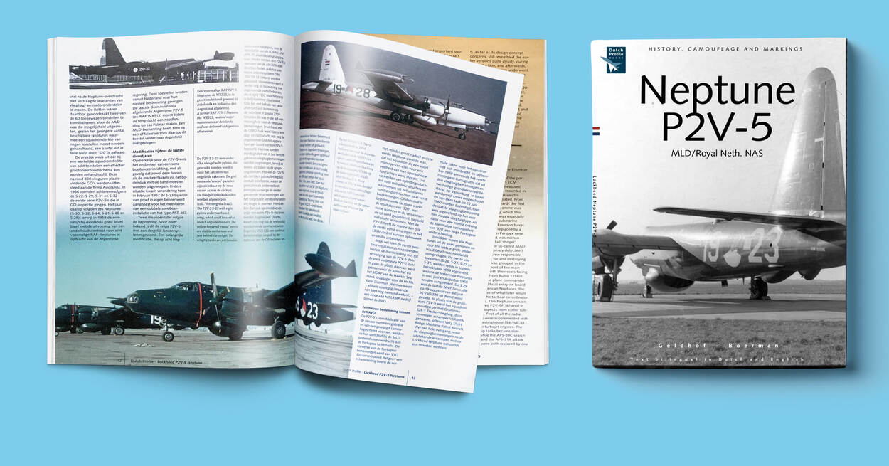 ‘Dutch Profile: Neptune P2V-5 – Marine Luchtvaart Dienst Royal Neth. Naval Air Service’ met ISBN 9789490092276 is geschreven door Nico Geldhof en samengesteld en uitgegeven door Luuk Boerman/Dutch Profile. De softback op formaat 20,5 x 29,5 cm telt 28 pagina’s en is voorzien van 8 kleuren- en 27 zwart-witfoto’s en 2 pagina’s kleurenprofielen (inclusief die op de omslag). De uitgave is onder andere te bestellen bij de uitgever en kost (inclusief verzending) € 14,95. Kijk voor meer info op www.dutchprofile.nl.