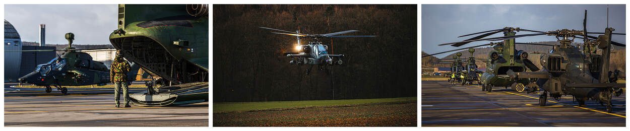 Een visueel spektakel in de omgeving van de Duitse landmachtbasis in Fritzlar tijdens de HWIC. Het is de hoogste vakopleiding voor helikoptervliegers en -loadmasters. Nieuw is de Duitse deelname met 11 cursisten, NH90’s en Tiger aanvalshelikopters. Samen met 10 Nederlanders, hun Apaches, Chinooks en Cougars volgen ze de 17 weken durende opleiding.