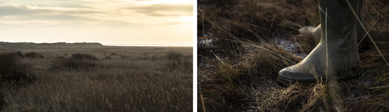 In een weids natuurgebied, vol met botsende belangen, loopt adjudant Henk Veerdig ons tegemoet. “Welkom in mijn paradijs”, glimlacht hij. De Cornfield Range heeft op het eerste gezicht weinig weg van een oefenterrein, zo in de duinen en omringd door het zacht wiegende helmgras. “Totdat de vlaggen worden gehesen”, weet Veerdig. Dan vallen de bommen in het westelijke deel of slaan de kogels in op oefendoelen, zoals containers. Veerdig vond op Vlieland zijn thuis en werkte 15 jaar als meteoroloog op de Cornfield Range. Inmiddels is hij locatiemanager van Vliegbasis Deelen. Sinds 5 jaar organiseert de Vlielander militair-historische natuurwandelingen op het westelijke deel van het eiland. De plek waar de luchtmacht sinds 1948 huist met detachement ‘Witte Muizen’.