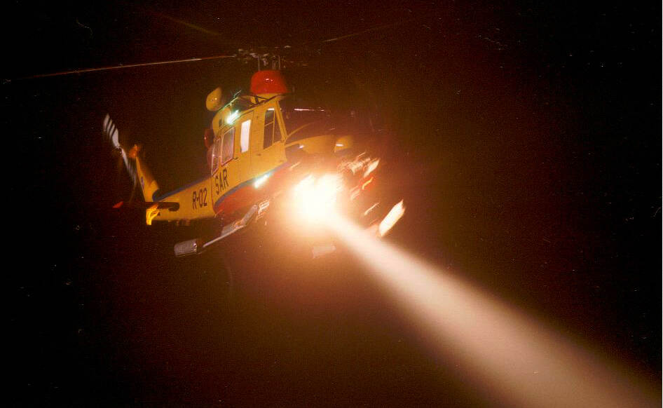 De redding op 30 januari was de eerste actie met de AB-412 in het donker, sinds de invoering in maart 1994. Schram: “De AB-412 had geen autopilot om te ‘hoveren’ en zonder referenties kun je boven zee dan niet stilhangen. Boven land heb je die referenties wel.” Foto: uit collectie Piet Schram
