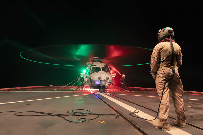 Vissersbootjes, boorplatformen, koopvaardijschepen, oorlogsschepen, smokkelbootjes; vanuit de NH90-gevechtshelikopter zag de vliegcrew nog nooit zo veel scheepsverkeer. In de Golfregio vaart het team met zijn boordhelikopter sinds eind januari mee aan boord van Zr.Ms. De Ruyter. De maritieme aanwezigheid met missie Agenor moet spanningen in het gebied verminderen en vrije doorvaart garanderen.