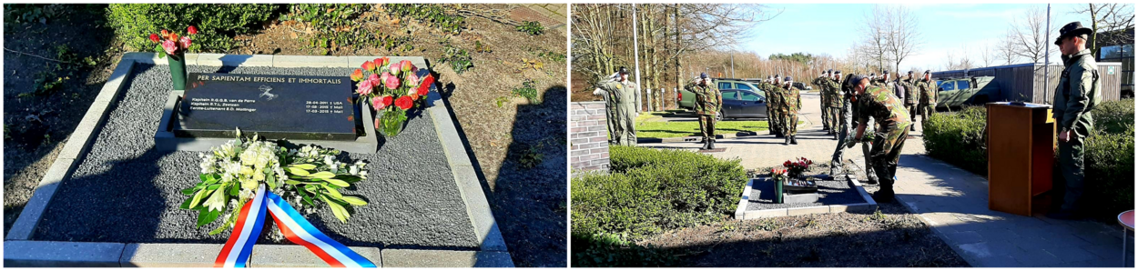 “Hoe zwaar is het om zo, uit het niets, je dierbare te verliezen. Dat laat je nooit meer los. En daarom zijn we elk jaar bij elkaar op 17 maart, om hen nooit te vergeten”, aldus commandant 301 Squadron luitenant-kolonel Martijn Kleiberg, die volgens traditie een toespraak hield. Collega’s legden vervolgens een krans bij de gedenksteen en namen een minuut stilte in acht. De herdenking werd afgesloten met een fly by van een Apache om 15.01 uur.