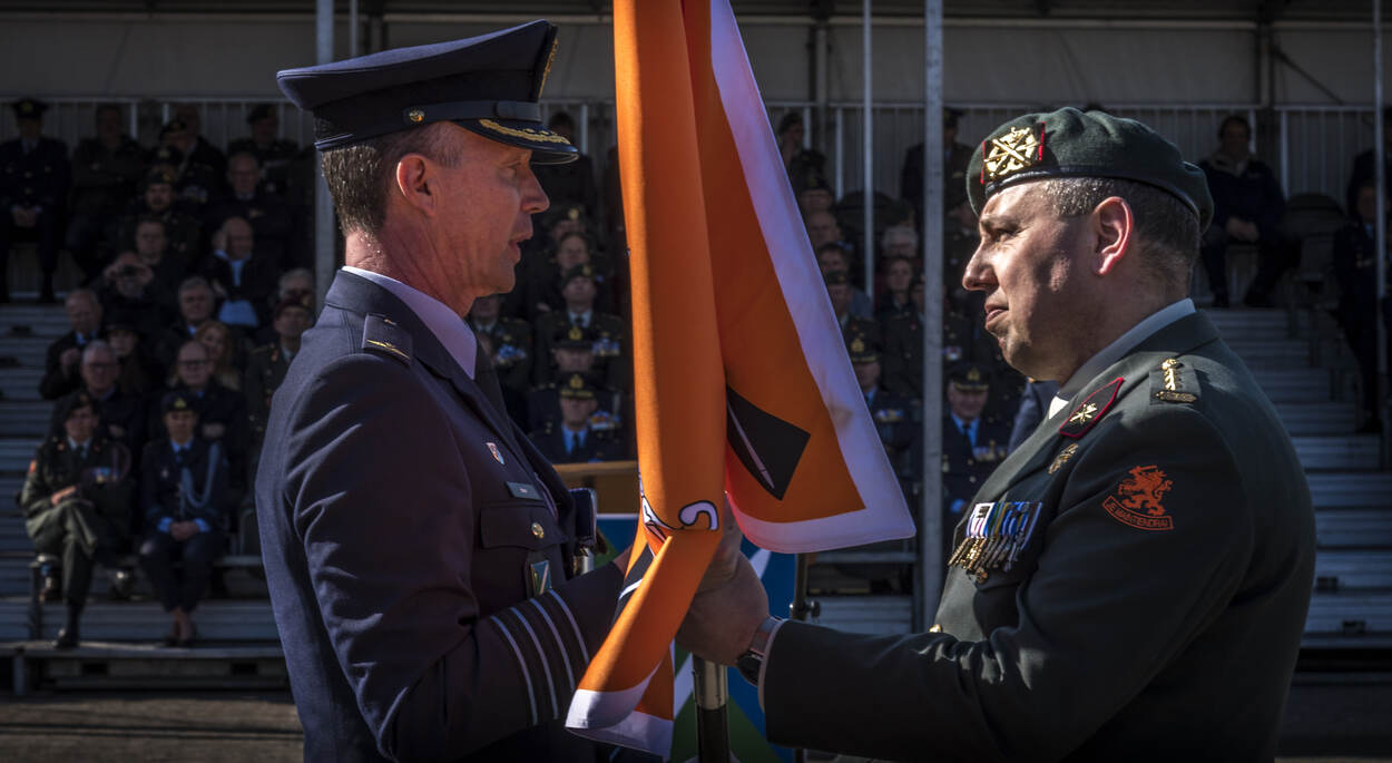 Het commando over de Groep Luchtmacht Reserve (GLR) is sinds vrijdag 6 maart in handen van kolonel Michel Brevink. Hij nam het bevel over van kolonel Raymond Kramer, die na 2 jaar afscheid nam. Brevink was hiervoor commandant Coördinatiecentrum Expertise Arbeidsomstandigheden en Gezondheid (CEAG). Foto: Emily van der Spoel.