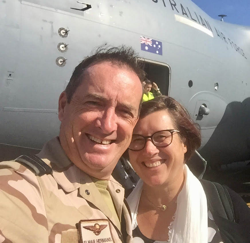 Elmar Hermans en zijn vrouw Simone Steendijk bij de Australische luchtmacht.