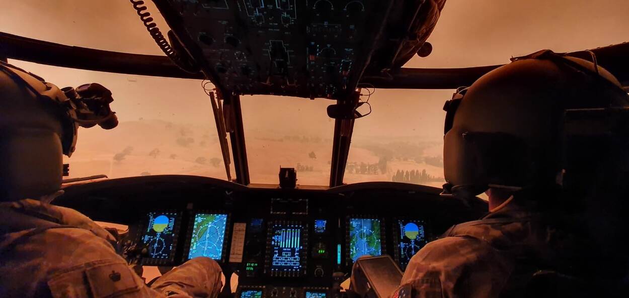 Van september 2019 tot en met februari van dit jaar werd Australië geteisterd door gigantische bosbranden. Hermans zag de vlammen vlakbij zijn huis. “Echt bang waren we niet, maar we hadden wel een plan voor het geval dat.” Foto: luitenant-kolonel Jamie Martin van de Australische luchtmacht.