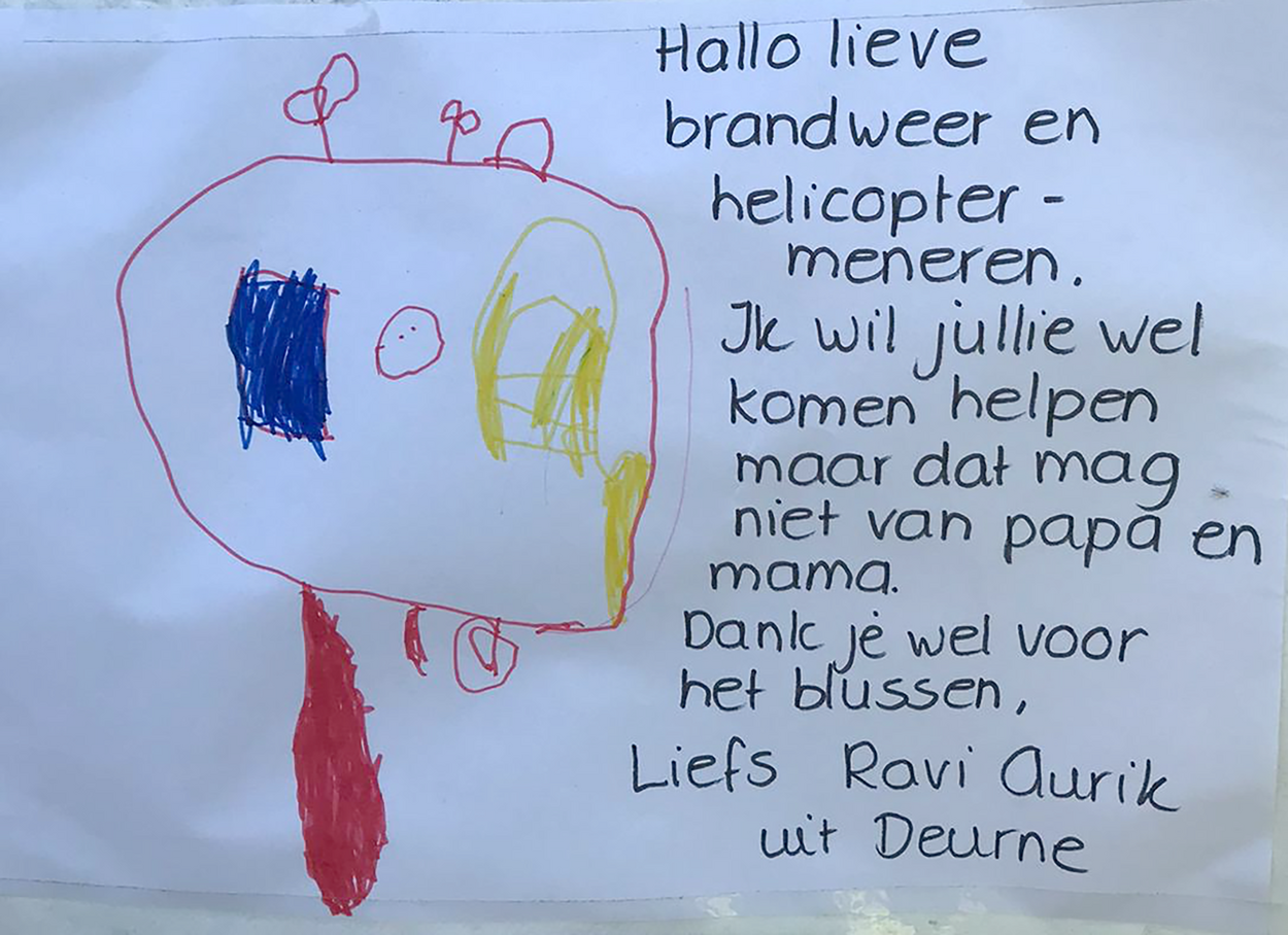 Een brandweerman kijkt anders naar brand. “Daar waar de grootste vlammen zijn, is niet altijd het grootste gevaar”, zegt Velthausz, in Deurne on-scene commander. “Dit was wel een hele grote inzet: lang en met veel middelen. Zo groot hebben we nog niet eerder gehad. Ik ben zelf ook met een Cougar de lucht in geweest als waarnemer. Dan merk je weer hoe zo’n team zo veilig en efficiënt mogelijk samenwerkt en dat met zo’n zware lading onder de helikopter: fascinerend! Hier was echt duidelijk wat we samen voor de BV Nederland doen, soms letterlijk in iemands achtertuin.”