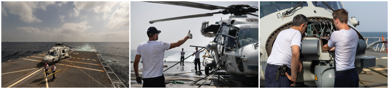 Kim vaart met missie Agenor voor de 3e keer langere tijd mee aan boord van een fregat. Voor Jarno is het al de 7e keer. Elke keer als de helikopter vanaf het dek opstijgt, kijken de monteurs ‘hun kindje’ na tot het uit het zicht verdwijnt. Kim: “Op Maritiem Vliegkamp De Kooy ben ik mij er iets minder bewust van hoe bijzonder dit is. Maar op het schip staan we steeds zo dicht met onze neus op het opstijgen en landen. Ondanks dat we het elke dag zien, blijf ik het machtig vinden.” Jarno knikt instemmend. “Er is niets mooiers.”