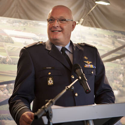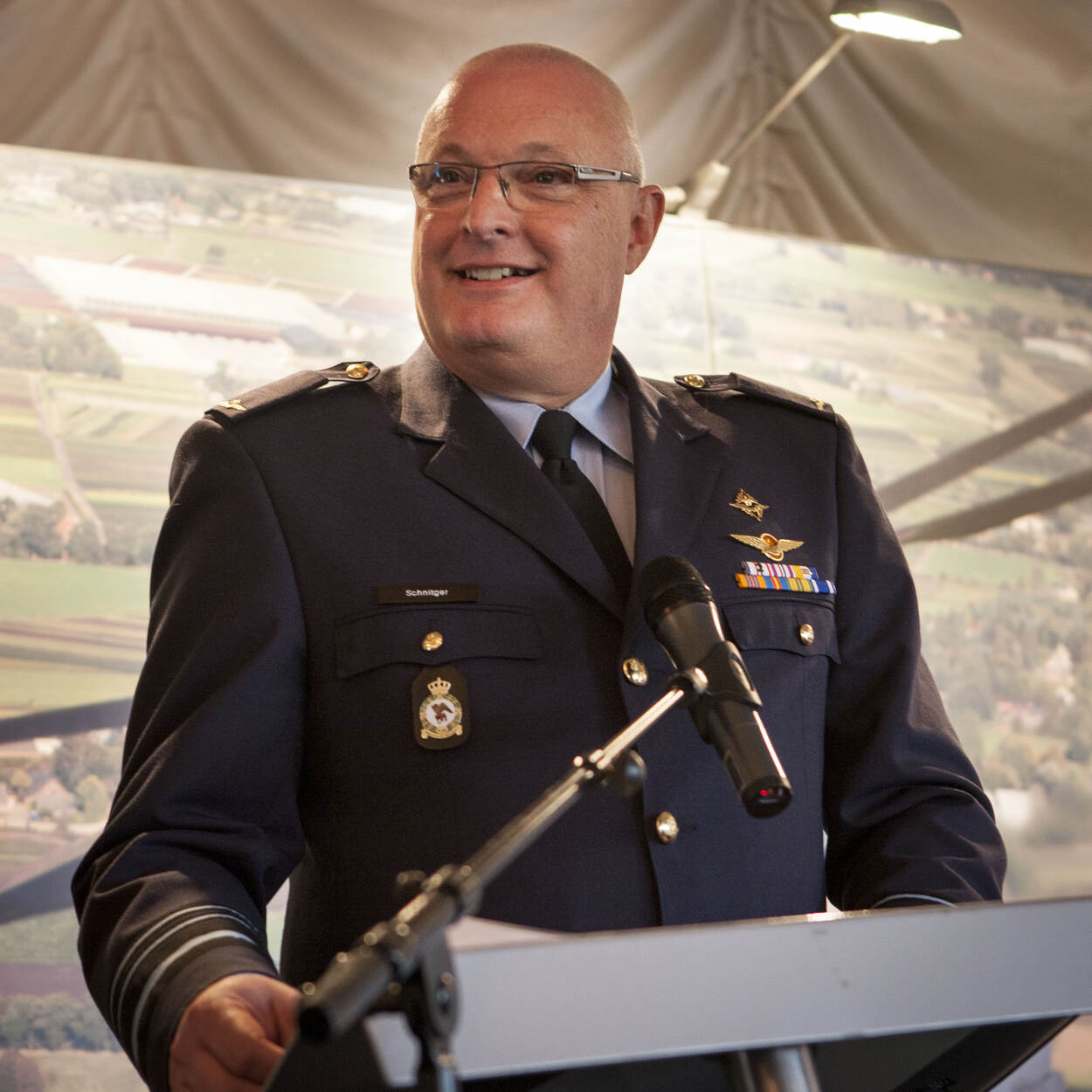 De scheidend C-LSK bedankt 'zijn luchtmacht' bij zijn afscheid op 16 juni 2016. Schnitger werd 61 jaar. Foto: Phil Nijhuis
