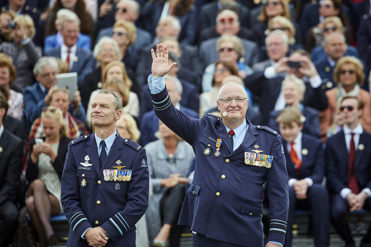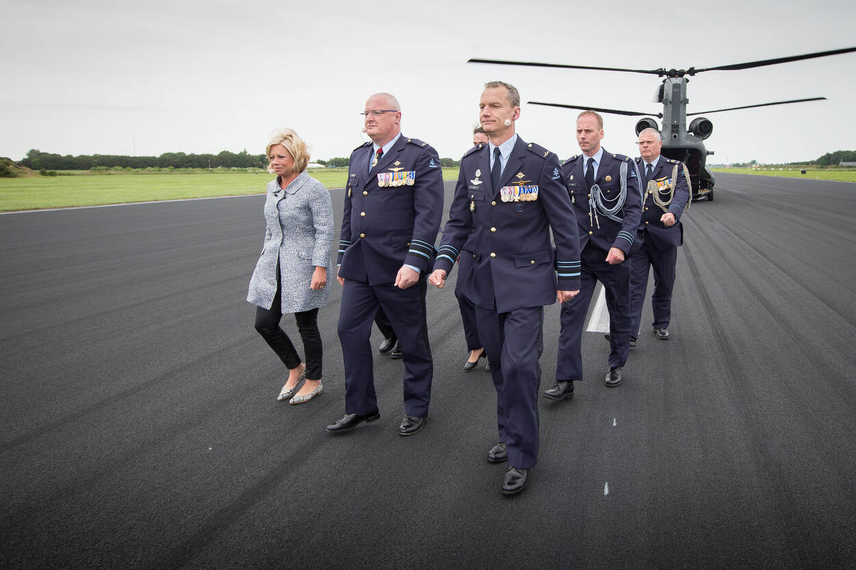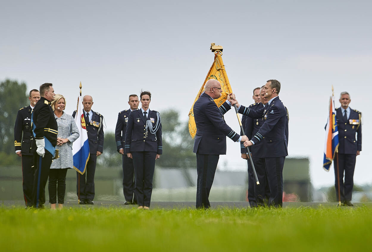 Ten overstaan van de bezoekers aan de Luchtmachtdagen 2016 droeg Schnitger het commando over aan Luyt. Dat gebeurde midden op de startbaan van Vliegbasis Leeuwarden, te midden van delegaties van alle CLSK-onderdelen. Foto: Phil Nijhuis