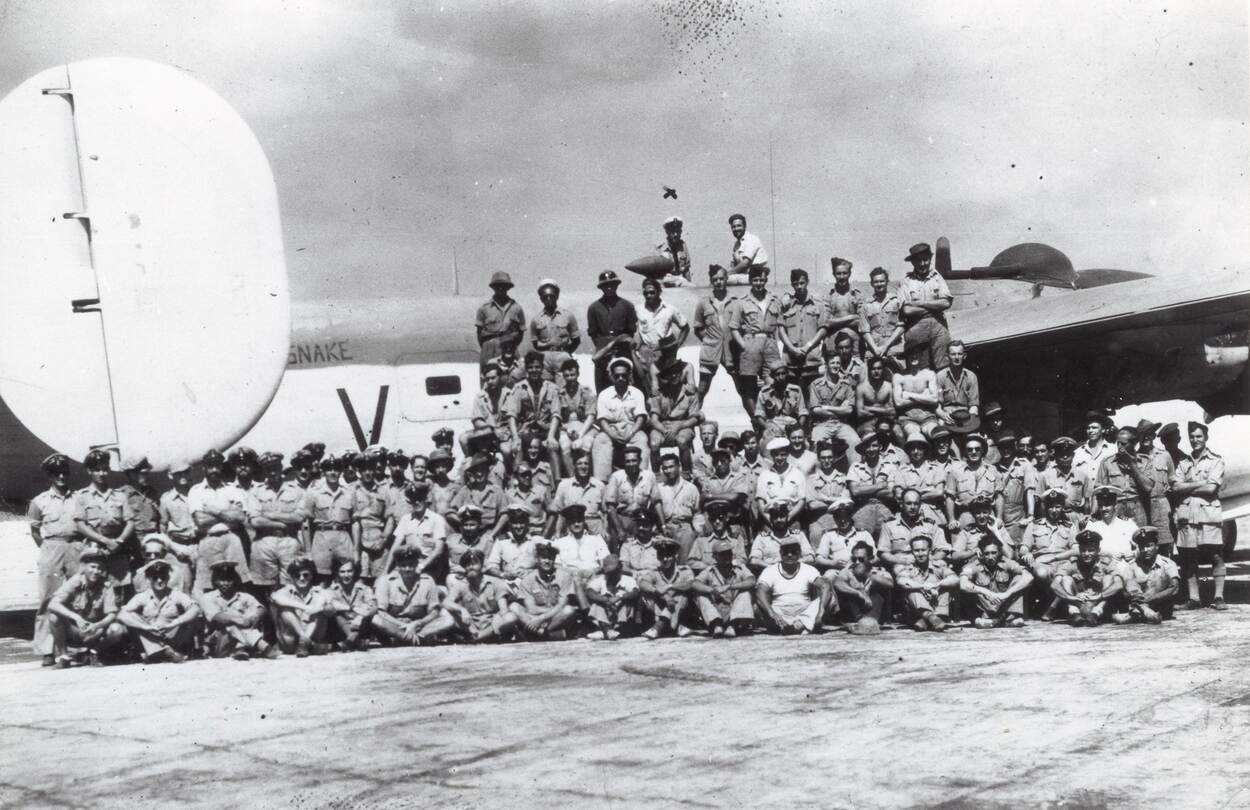 1 van de B-24 Liberator zware lange afstandsbommenwerpers, van het detachement op de Cocos Eilanden, zo’n 3.000 kilometer van RAF China Bay.