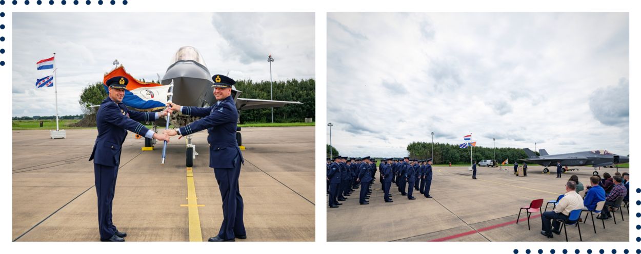 Ten tweede het besef dat de transitie veel verder gaat dan alleen het squadron. De hele keten moet hetzelfde einddoel voor ogen houden. De luchtmacht, maar ook de Defensie Materieel Organisatie, landmacht, marine en Defensiestaf. We werken veel met elkaar samen en zijn van elkaar afhankelijk in dit traject. Zoals het er nu naar uitziet kunnen we nog steeds vasthouden aan de geplande mijlpalen.”
