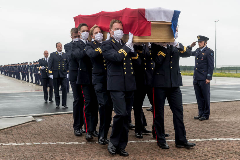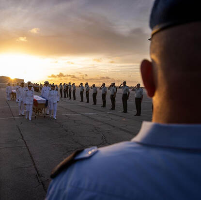 Militair personeel neemt op Curaçao op ceremoniële wijze afscheid van de overleden collega’s. Foto: sergeant Jasper Verolme