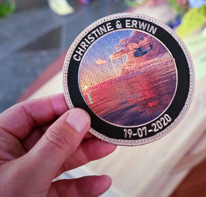 Een ontroerend en fraai eerbetoon. Collega’s van Christine en Erwin ontwierpen deze badge ter nagedachtenis aan hen. Foto: Louis Meulstee