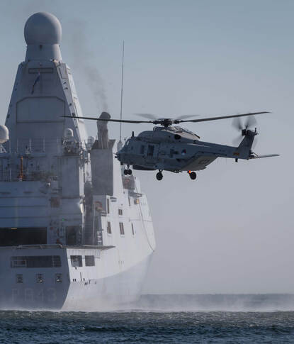 Een NH90 op archiefbeeld met Zr. Ms. Groningen. Foto: sergeant Sjoerd Hilckmann