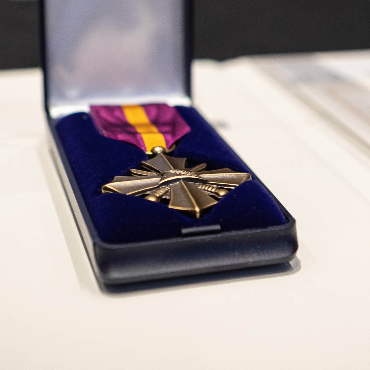 Op 16 juli kreeg sergeant 1 Rob Kardux, onderhoudsmonteur radarsystemen verkeersbeveiliging bij het 982 Squadron, de Waarderingsspeld Koninklijke Luchtmacht uitgereikt voor zijn reddingsactie op 9 mei 2018.