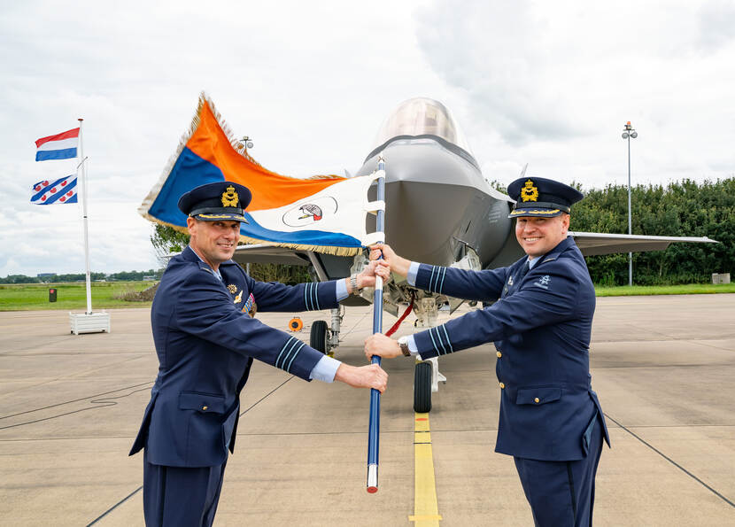 Luitenant-kolonel vlieger Guido Schols is sinds 7 juli commandant van het 322 F-35 squadron. Hij nam het bevel over van ranggenoot Ian Knight. Schols was hiervoor stafadviseur bij de Afdeling Luchtoptreden van de Directie Plannen op de Defensiestaf in Den Haag. Knight neemt (voorlopig) afscheid van de vliegoperatien en gaat zich de komende tijd inzetten bij de Directie Operaties op de Defensiestaf in Den Haag. Foto: John van Helvert