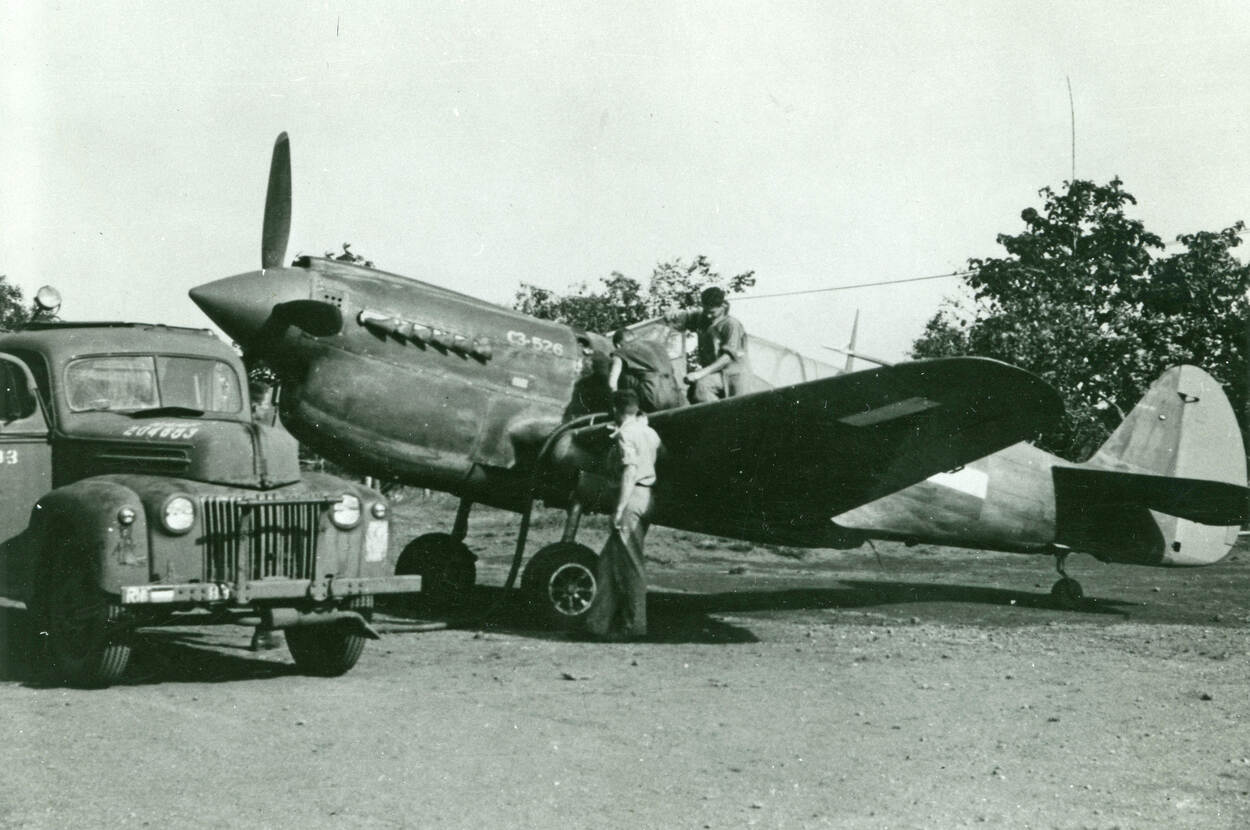 Vlieger sergeant-majoor b.d. Hugo ‘Boebie’ Haye, over zijn toestel: “Het duurde een half uur voordat we met de Kittyhawk op hoogte waren. Het was echt een vliegende tank, zo zwaar. Ik zat er daarom niet op te wachten om Japanners onderweg te ontmoeten. Zij hadden superieure kisten. Ik heb mijn best gedaan.”