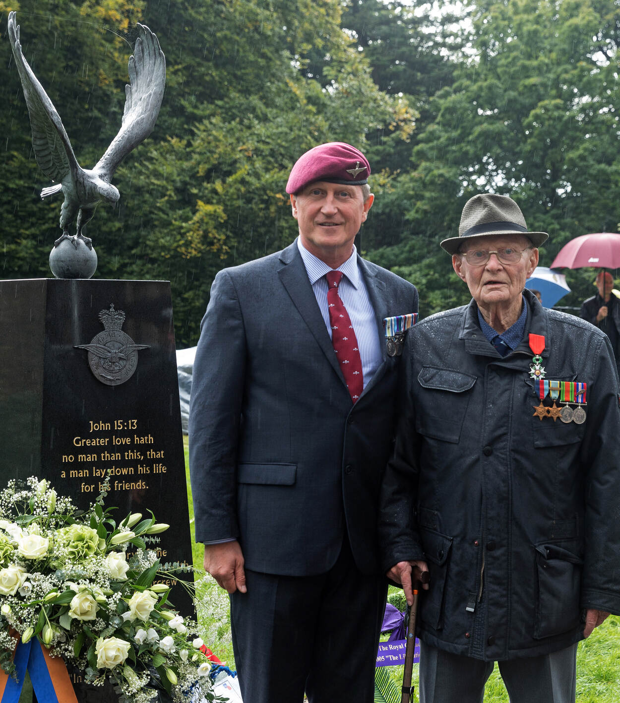 Eames (met een voormalig officier van het Britse Parachute Regiment) in het Airborne Museum in Oosterbeek, na de Market Garden-herdenking in 2017 op de Ginkelse Heide. Foto: Louis Meulstee