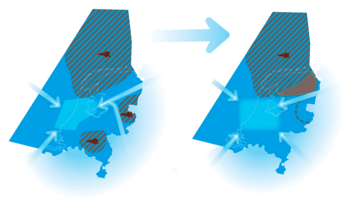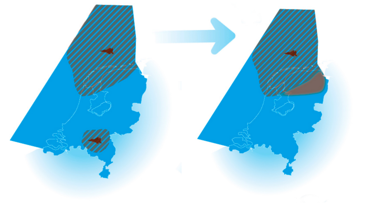 De commerciële luchtvaart heeft, vanuit Schiphol gezien, vooral ruimte naar het zuidoosten nodig. Daar ligt nu nog een kleiner militair oefengebied, TRA-12. De luchtmacht staat dat naar verwachting tussen 2023 en 2027 af en krijgt daarvoor een groter oefengebied in het noordoosten van Nederland terug.