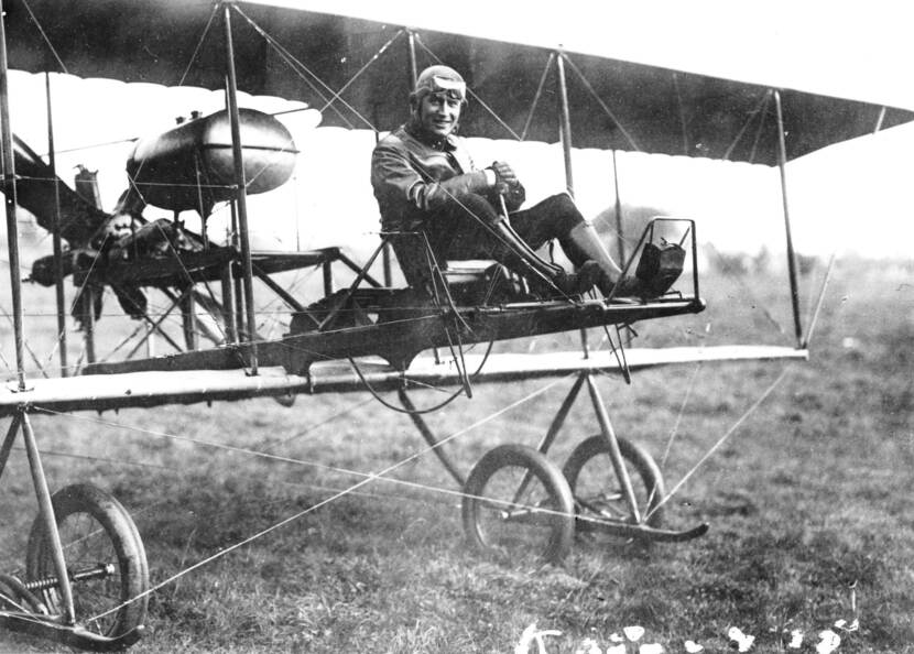Tweede luitenant-vlieger Floris Albert van Heijst (1883-1975) met de ‘Brik van Van Meel’. Foto: uit collectie Nederlands Instituut voor Militaire Historie